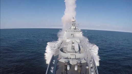 Пуск «Калибров» с корабля в Черном море на ходу