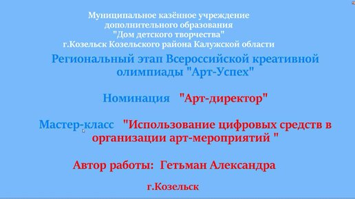 Мастер класс "Использование цифровых средств в организации арт-мероприятий"