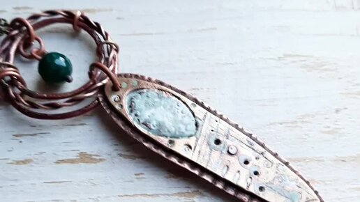 Крупный этнический кулон из меди, латуни, агата и горячей эмали