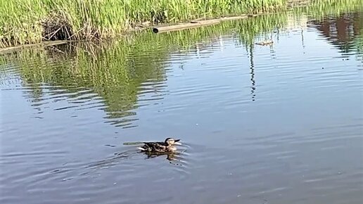 Странное поведение дикой утки: открыт клюв и трясет хвостом.