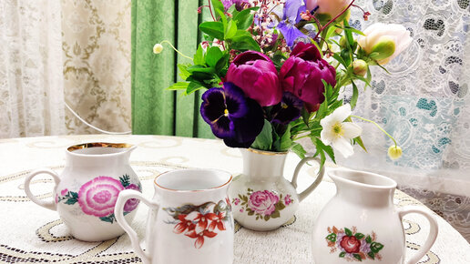 Новые приобретения посуды для букетов. Молочники из прошлого века
