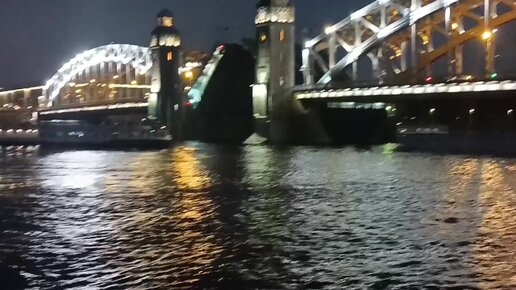 Питер. Развод мостов. Белая пасмурная ночь.
