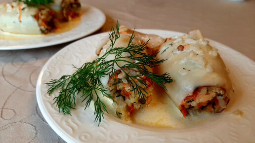 Фаршированные кальмары, запечённые в сливках. Делюсь рецептом красивого и вкусного ужина