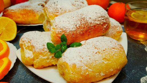Творожные булочки из дрожжевого теста с яблочным повидлом к чаю