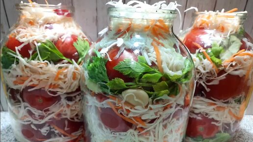 Вкуснющие маринованные помидоры с капустой, в банках , под ключ , на зиму. Домашнее консервирование.