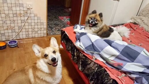 Джоли троллит Лимона 😈, а Лимон - меня. Наша весёлая компашка перед сном. Корги и Шпиц | Передержка Собак Ростов
