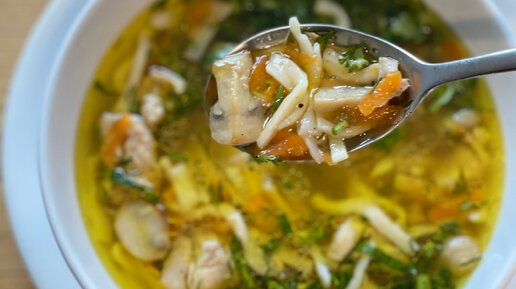 Куриный суп-лапша с грибами! Очень вкусно!