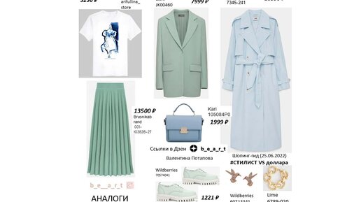Базовый гардероб. С чем носить зеленый пиджак, футболку с принтом, голубой тренч, юбку плиссе. Как сочетать зеленый и голубой.