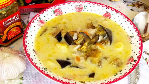 Суп с баклажанами и грибами
