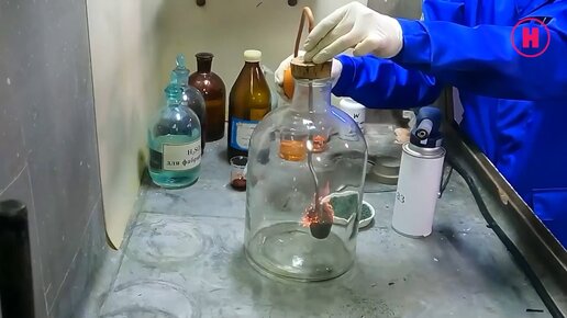 Очень зрелищный эксперимент «огненная метель».🔥 Используем: аммиак и порошок дихромата аммония.