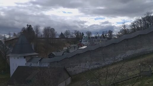 На смотровой площадке Псково-Печерского монастыря. Взгляд за монастырские стены