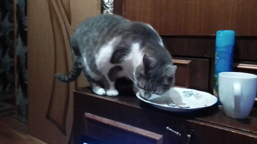 Опять этот кот..то тарелку со сметаной облизывает, то в пакете шуршит