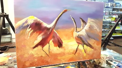 Журавли Мастер-Класс живописи. Александр Южаков +79857776200