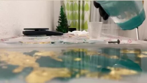 Заливка эпоксидной смолой. Изготовление подноса