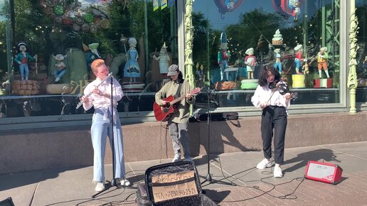 Девушки-музыканты красиво спели песню на Невском проспекте