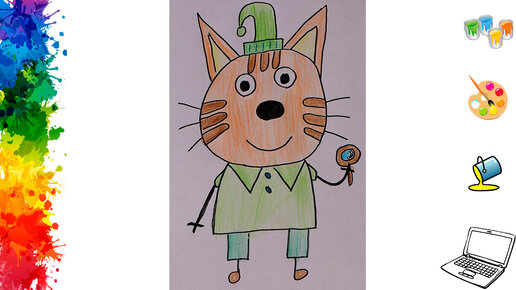 Как нарисовать Компота из мультика Три Кота, рисунок для детей поэтапно карандашом