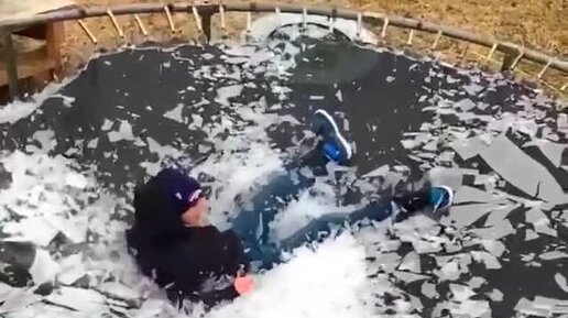 Прыжок на покрытый льдом батут. Удивительное зрелище!