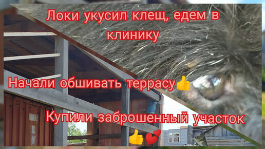 Локи укусил клещ 😱. Начали обшивать террасу 👍. Купили заброшенный участок 💕