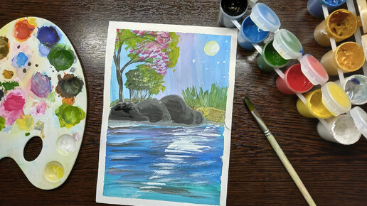 Рисую каменистый берег озера