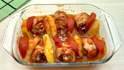Простой рецепт вкусного ужина! Картошка с курицей в духовке)