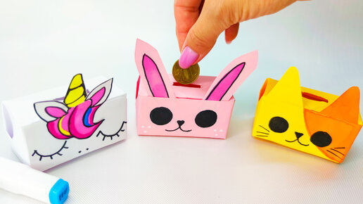 Оригами копилка Единорог, Котик и Зайка из бумаги | Простая поделка своими руками