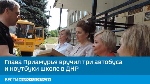 Глава Приамурья вручил три автобуса и ноутбуки школе в ДНР