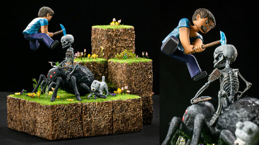Невероятная битва Стива против паука-жокея MINECRAFT диорама