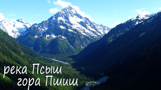 Полет на дроне вдоль реки Псыш к горе Пшиш. Гора Чайка, река Габулучат. Летим к реке Белая. Архыз