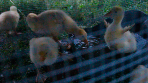 Гусёнок любит долго сидеть в воде, купаться. Ему всего две недели.