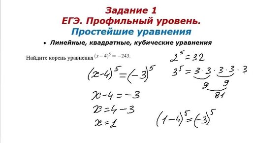 Задание 1 ЕГЭ 2022.Линейные, квадратные, кубические уравнения. Математика