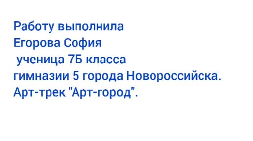 Егорова София 7Б класс МАОУ гимназия №5 город Новороссийск. Арт-трек "Арт-город".