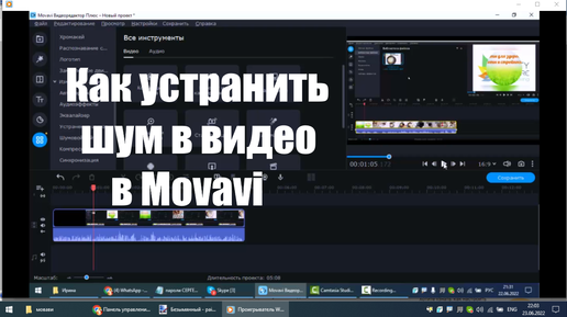 Как устранить шум в видео, как изменить громкость в видеоредакторе Movavi