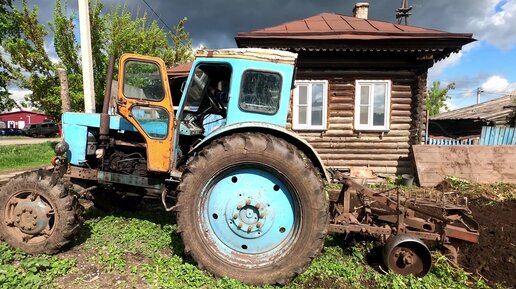 Трактор Т-40 пашет заброшенный огород с большими корнями. Вывезли мусор на МТЗ-80