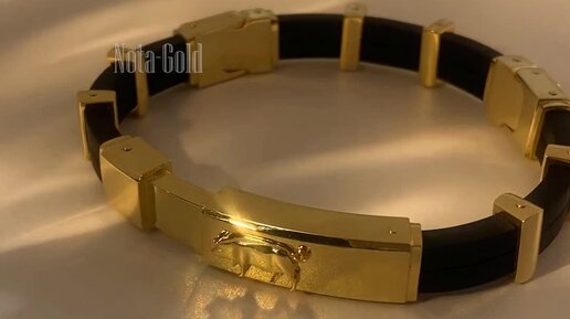 Браслет жёлтого золота 750 пробы с каучуком на замке со свинкой