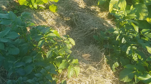 Нужен хороший урожай картофеля. Закладываю борозды сеном. Картофелю становится влажно и не надо выпалывать сорняки. Их просто нет