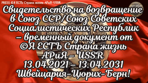 ‼️Свидетельство на возвращение в Союз ССР от ©Я ЕСТЬ Страна жизнь АРиЯ - USSR 🏕️