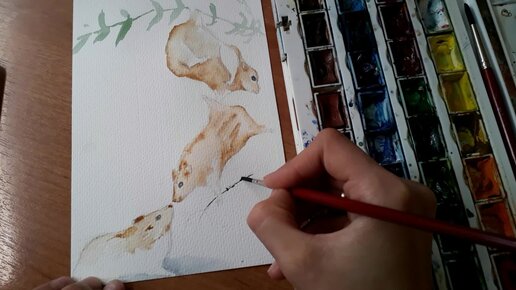 Рисуем акварелью маленьких мышат