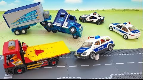 Полицейская машина Эвакуатор Самосвал Мусоровоз - рабочие машины для мальчиков. Распаковка.