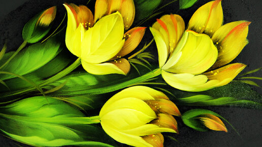 Рисуем Желтые Тюльпаны. Научиться писать маслом в Жостово. Уроки рисования Ларисы Гончаровой