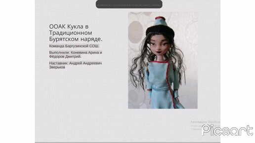 Баргузинская СОШ, АРТ-УСПЕХ, ООАК Кукла в традиционном бурятском стиле. Командная работа Коневиной Арины и Фёдорового Дмитрия.