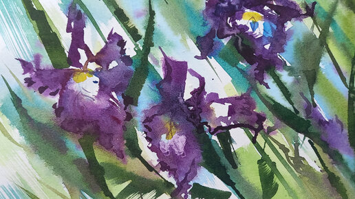 Ирисы, лето, акварель. Вторая попытка