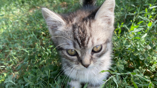 Маленький котёнок. Накормили и спать уложили