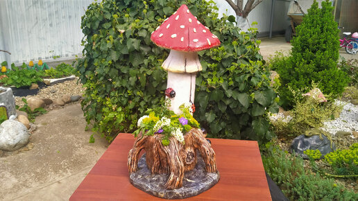Гриб мухомор с Вазоном пенек из цемента своими руками