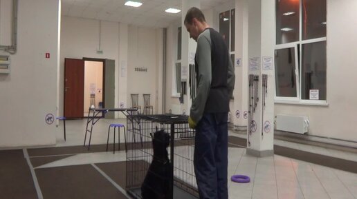 Приучаем собаку к клетке. 1 вариант. Шигаев Роман и ризеншнауцер Куба. Тольятти, 2 июля 2019.