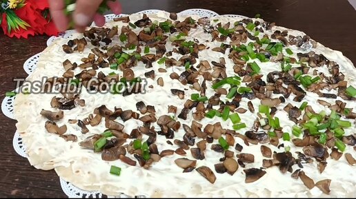 Рулет из Лаваша с грибами и сыром
