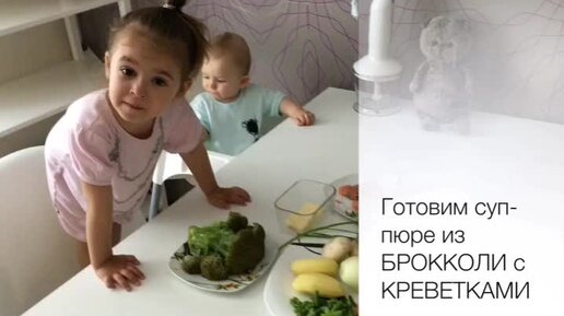 Суп-пюре из брокколи с креветками от нашего мини шеф-повара))