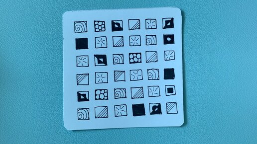 Здесь квадратики основного узора заполнены разными узорами в хаотичном порядке. Очень простой прием рисовать не задумываясь