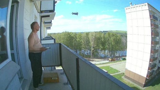 Вылет дрона DJI MINI 2 с балкона