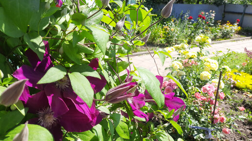 У МАМЫ В ДЕРЕВНЕ. ПРИГЛАШАЮ ПРОГУЛЯТЬСЯ ПО ЕЁ ПРЕКРАСНОМУ САДУ. ЦВЕТУТ РОЗЫ И КЛЕМАТИСЫ. МНОГОЛЕТНИКИ И ПОЧВОПОКРОВНИКИ.