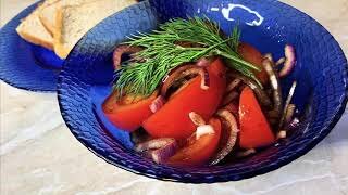 Ну очень вкусный салат из помидор с необычной заправкой! Сохраните рецепт.